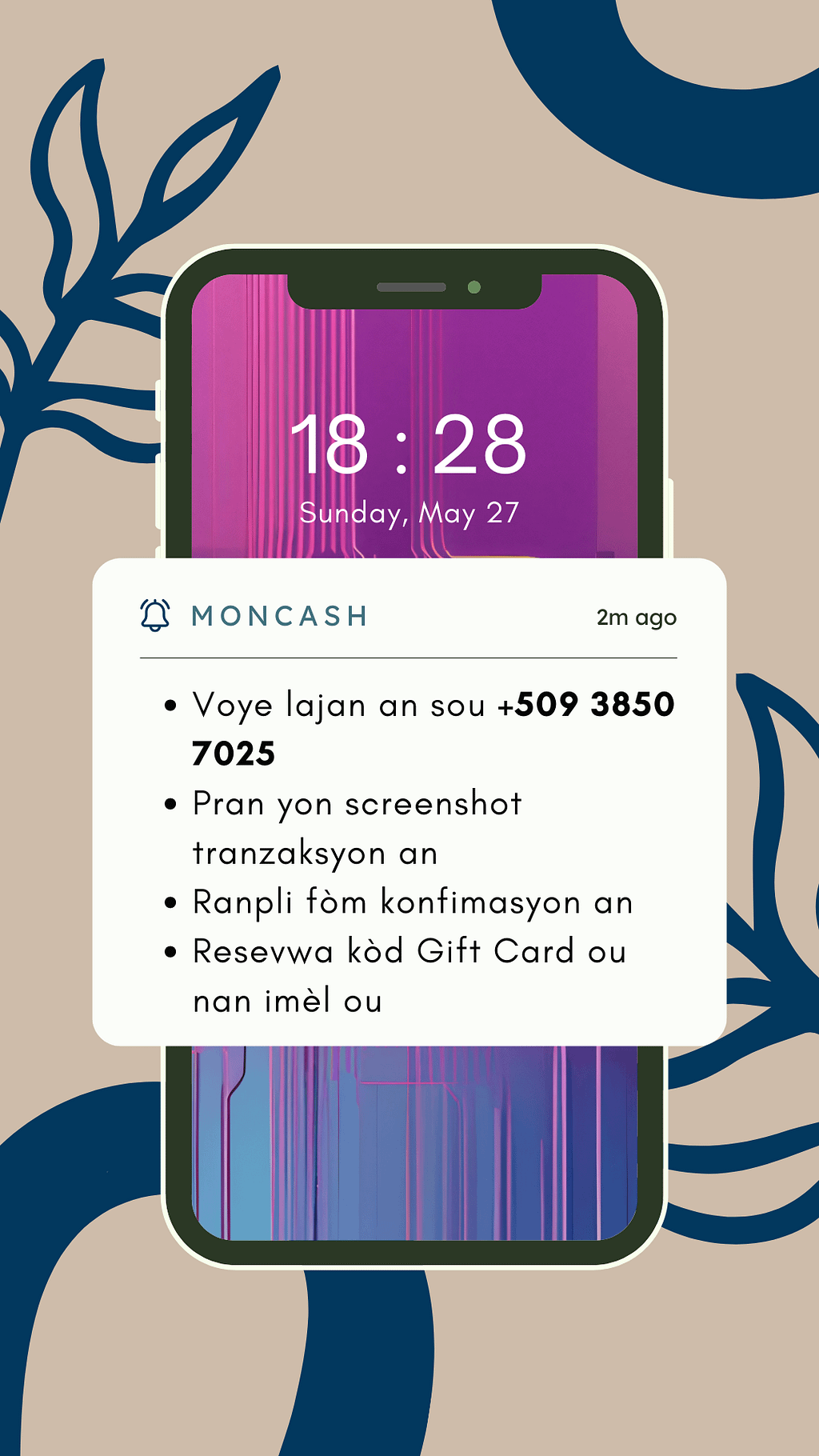 Nou aksepte MonCash pou prèske tout kategori pwodwi yo.